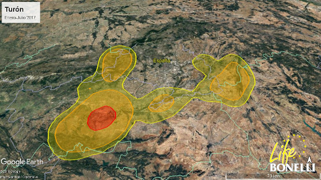 El área que ha utilizado fundamentalmente este individuo se encuentra en las inmediaciones del embalse de Castrejón en Toledo.