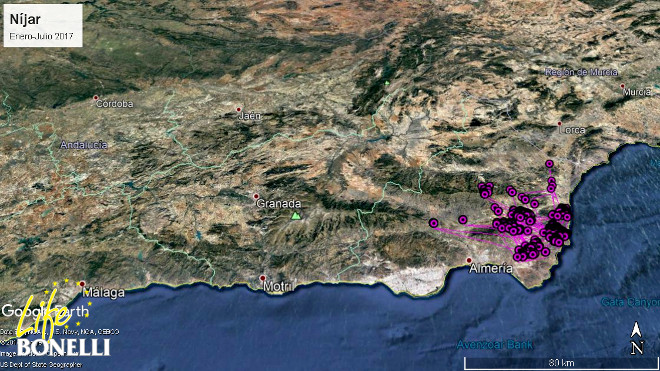 Marcado en Almería dejó de emitir a primeros de Julio. Sus movimientos se han centrado en la provincia de Almería.