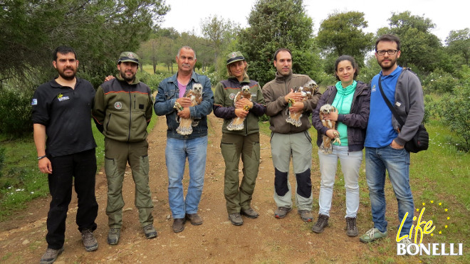 Esta acción se circunscribe LIFE Bonelli, el proyecto tutelado por la Unión Europea que persigue la recuperación del águila de Bonelli en diferentes zonas españolas. Dos de las aves liberadas ahora han sido criadas en cautividad en Francia en el centro de la LPO/UFCS de Christian Pacteau y las otras dos son ejemplares salvajes cedidos por la Junta de Andalucía, que participa en LIFE Bonelli. Las cuatro águilas de Bonelli se encontraron en el "hacking" con otro ejemplar que había sido allí instalado una semana antes.